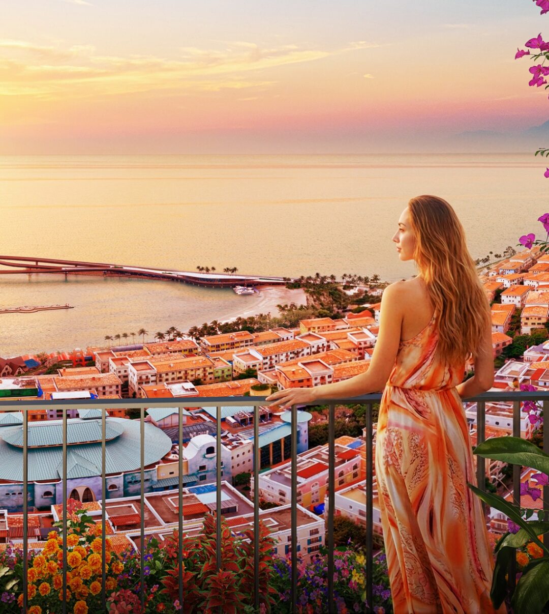 Từ độ cao lý tưởng của The Sunset, cư dân được đặc quyền thu trọn vẻ đẹp biểu tượng của Cầu Hôn và toàn cảnh Sunset Town.